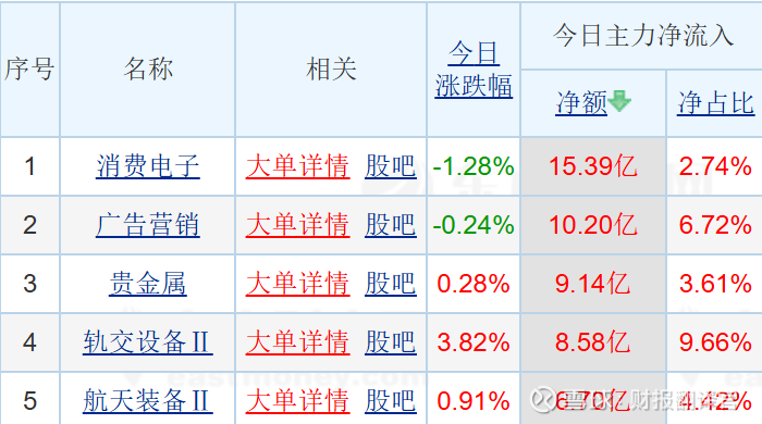 消费电子净流入15亿。