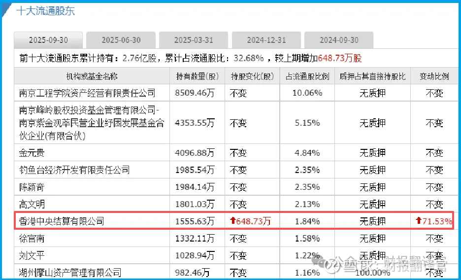 香港中央结算有限公司,加仓72%。