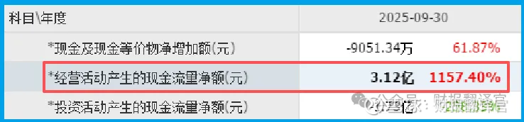 现金净额3.12亿,暴增1157.40%,说明回款加速,经营好转。