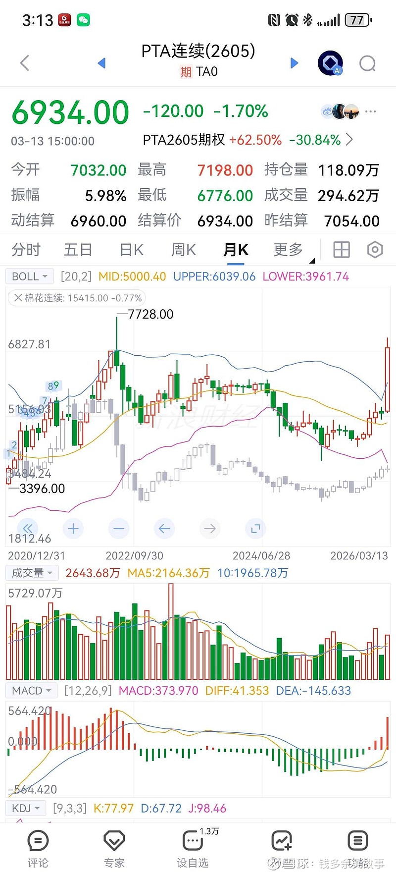 棉花指数和PTA正相关,弹性比PTA还大。石油短缺直接给全球化工去产能。PTA涨了,棉花的供给弹性更差,风口还会远吗。
