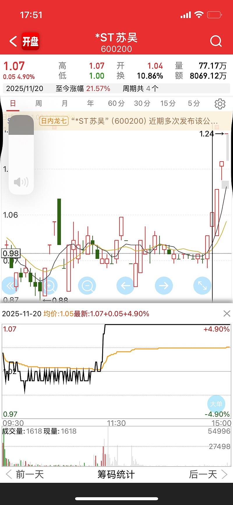 然后第二个$*ST苏吴(SH600200)$ ,你除非不看。没有这个念想,没有这个方向上的念想。如果你有了这个方向上的念想。你没有交易这个票感觉不可能,特别是做短线的。学习了一辈子涨停连板投机的那种。