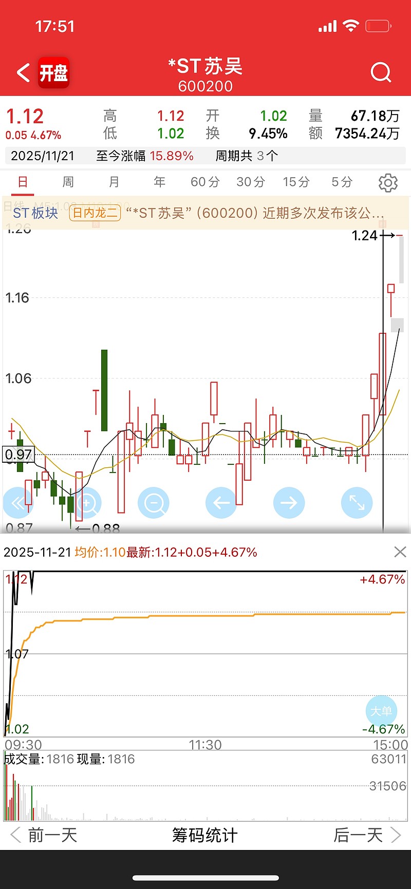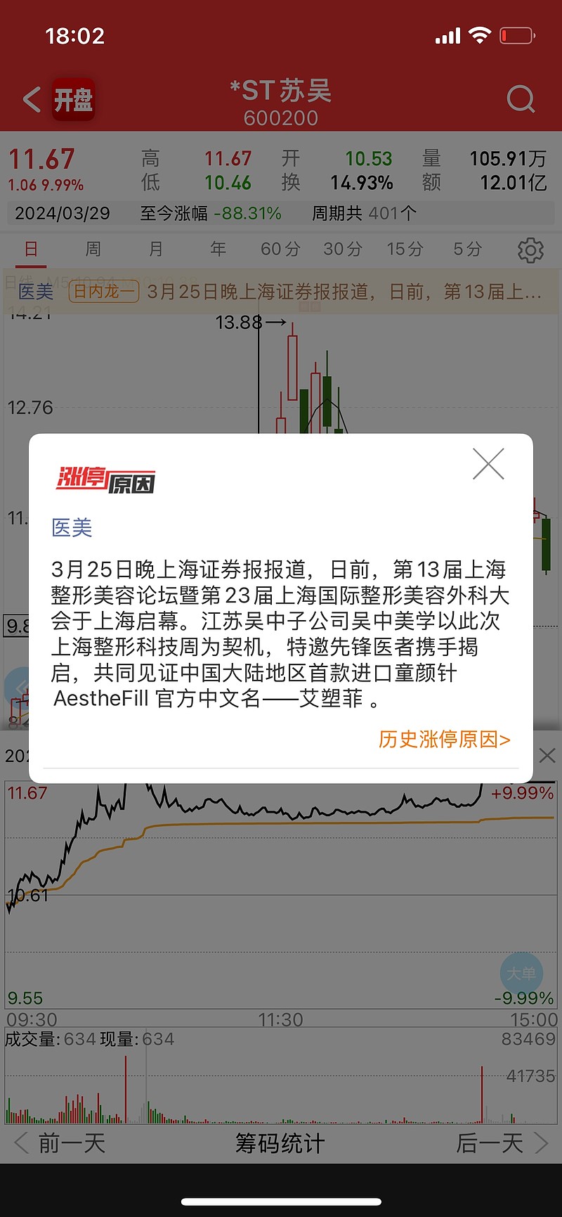 并且,这个st苏吴,以前是那个江苏吴中,这个票其实以前挺多故事和异动过的。今年前面这个股票讲过一次童颜针的故事,不知道你们还记不记得。