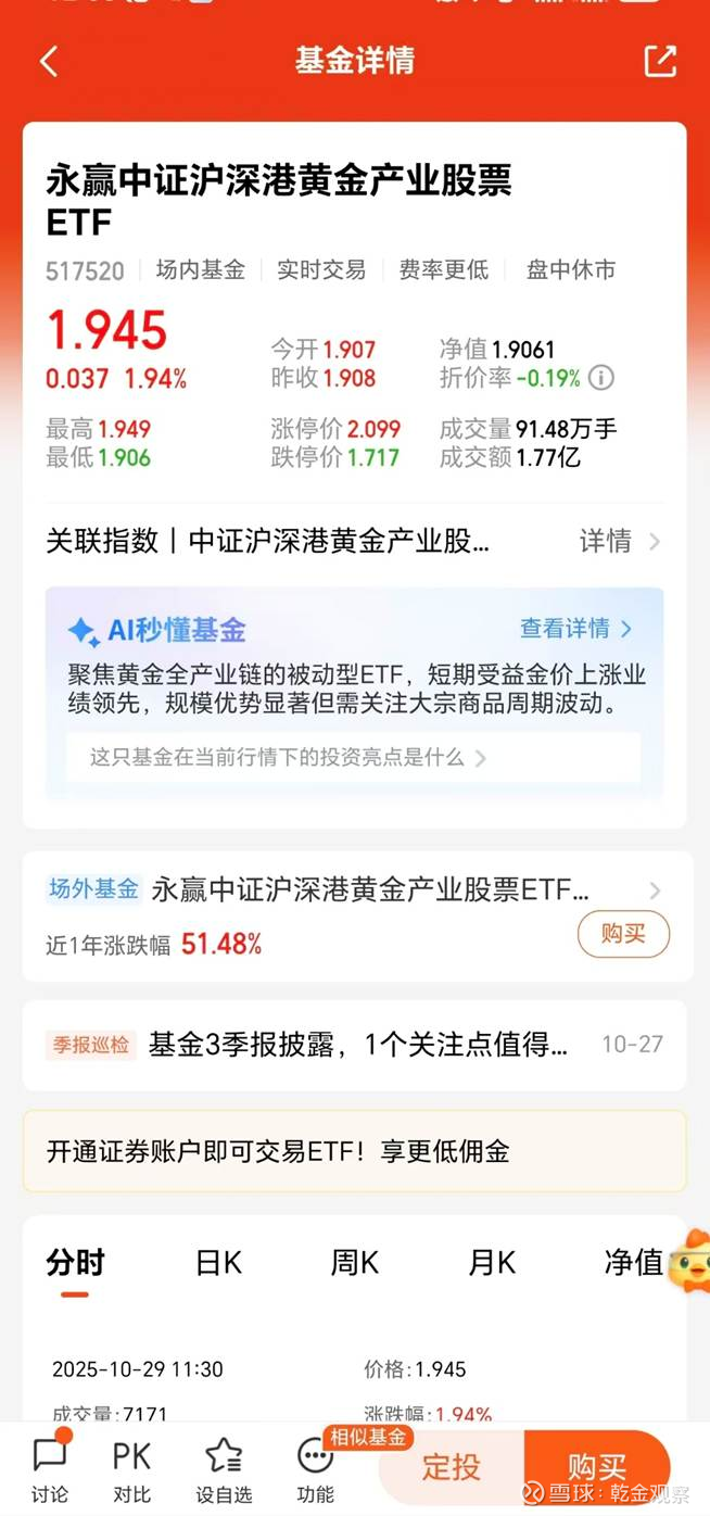 近期黄金迎来多重利好支撑,场内规模最大、流动性最强的永赢中证沪港深黄金产业股票ETF及$永赢中证沪深港黄金产业股票ETF发起联接C(F020412)$ (A类:020411/C类:020412),深耕黄金股领域,今天上涨近2%,值得持续锁定!