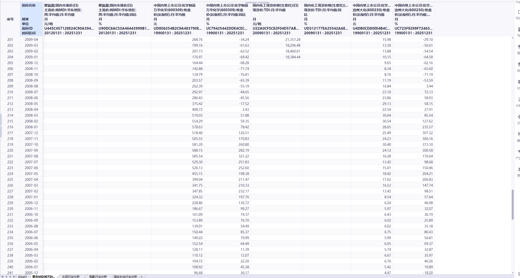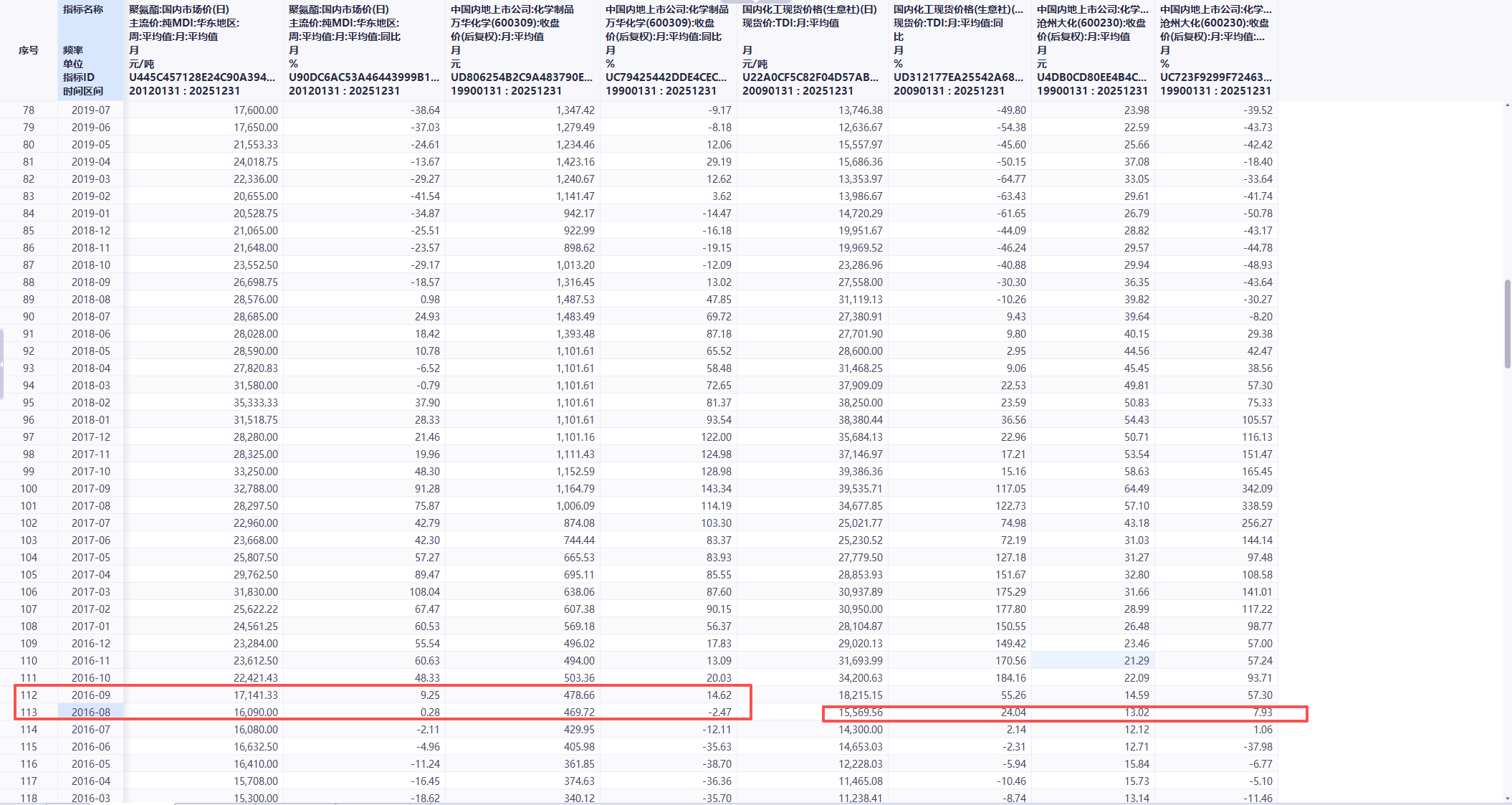 化学制品 -> 聚氨酯:这是万华化学、沧州大化、一诺威等核心原材料(MDI、TDI、聚醚等)生产企业的直接分类。