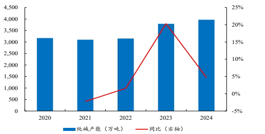 行业总产能:截至2025年8月,国内纯碱行业有效产能为4200万吨