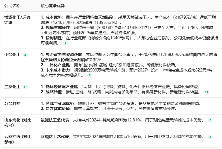 推断:仅中盐化工和远兴能源两家公司的已投产产能之和已接近900万吨,占行业总产能的 21% 以上,是行业的绝对龙头。若算上其规划产能(远兴二期280万吨、中盐通辽500万吨),未来行业集中度将进一步提升。