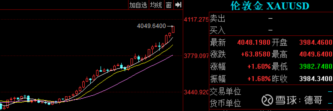 现在答案已经揭晓,国庆假期伦敦金现货大涨近5%,已经稳稳站上4000 美元/盎司。