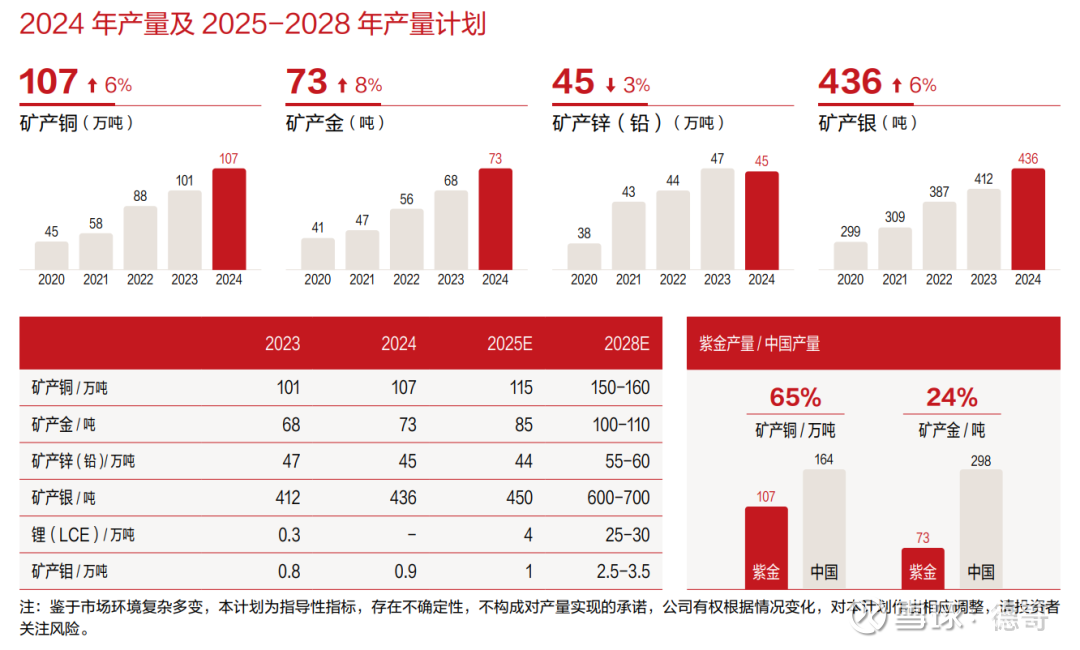 紫金矿业每年的年报都会披露过去几年的产量以及未来的产量规划,下图截取自紫金矿业2024年年报。