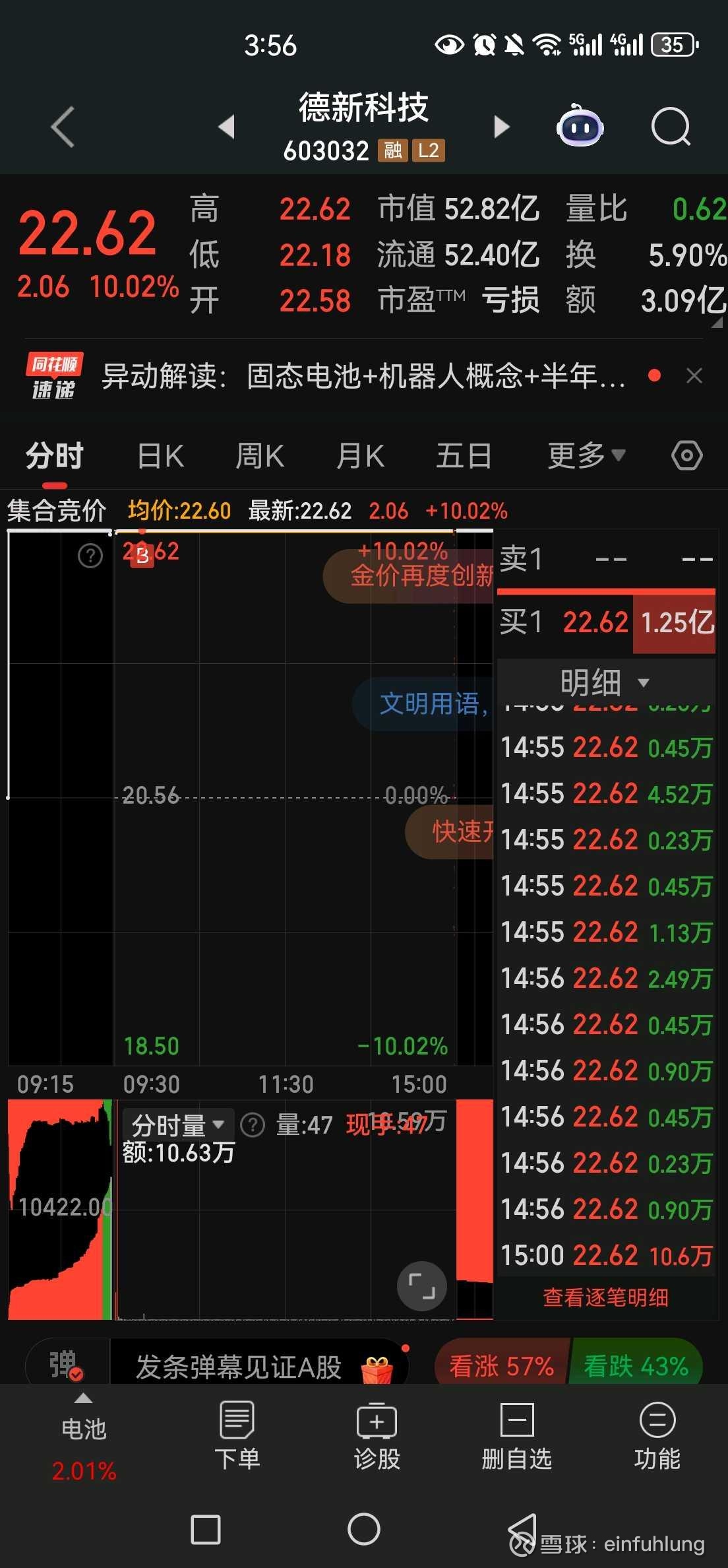 2个账户买到德新科技,其他几个账户排队没买到。开盘同花顺出现了点问题,下单就显示买入金额错误,调整了半天错过了全部上车的机会。