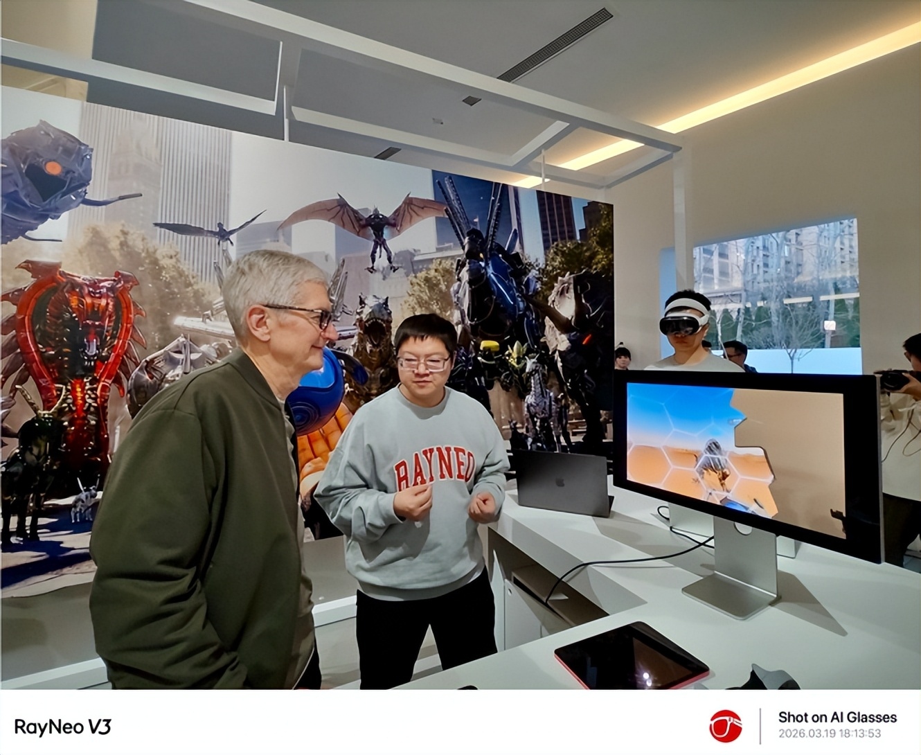 这堂公开课的最高潮,是雷鸟创新游戏负责人与苹果CEO蒂姆·库克的同台对话。库克为何亲自为一家中国AR公司站台?因为雷鸟创新展示的,正是苹果所畅想的空间计算未来——一个从硬件底层到应用生态完全打通的体验闭环。作为是业内唯一拥有光学全链路自研量产能力的公司,这种硬核技术壁垒,让它有资格成为苹果的“生态合伙人”,而非简单的开发者。
