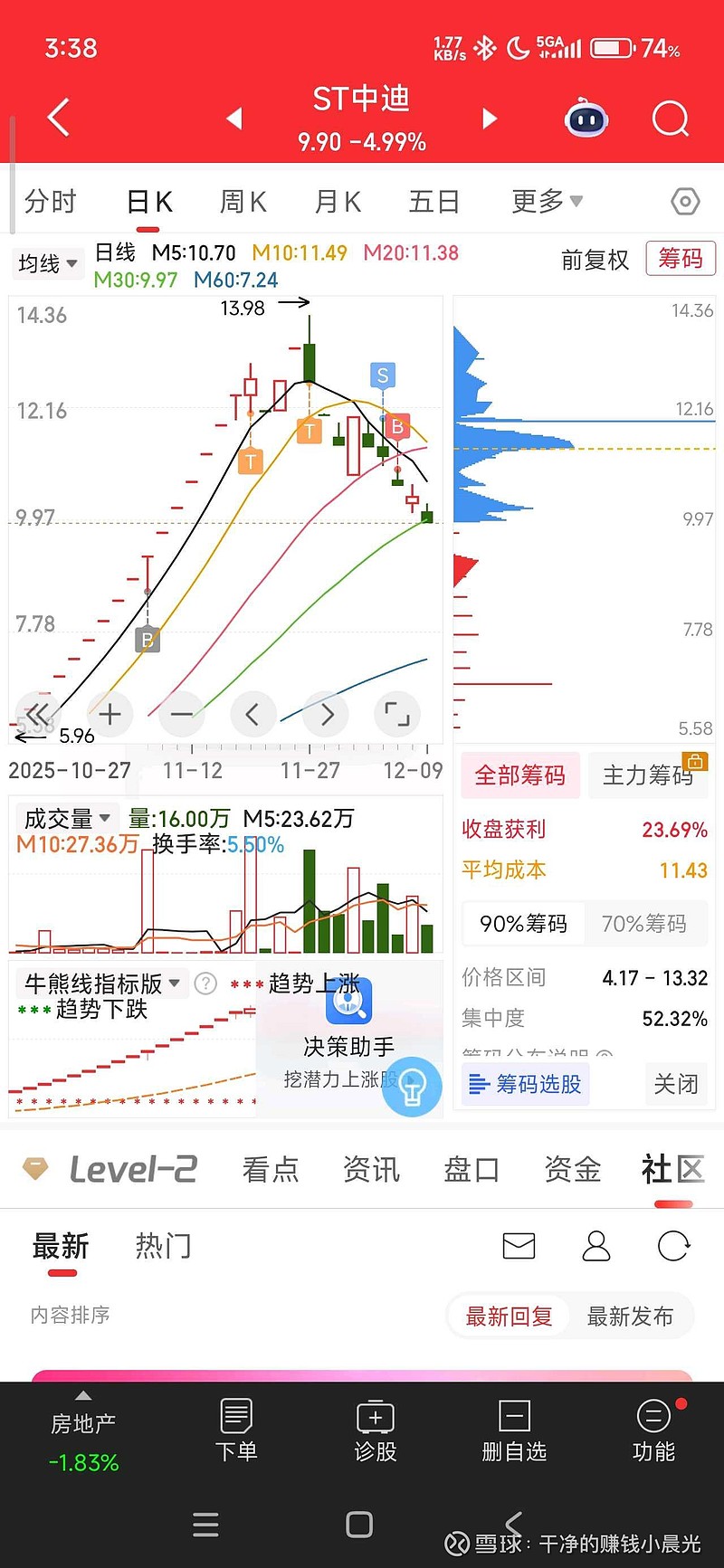 还有6个点利润明天-5坚决离场不能亏损,被折磨的没脾气了。