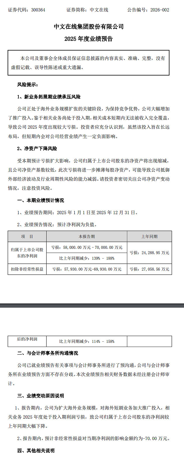 之前炒AI产业链上游的旧“易中天”(CPO)好歹有业绩,相比之下现在炒的AI产业链下游应用的新“易中天”完全就是瞎炒了,比如这个中文在线昨天公布了业绩预告,25年越亏越多,26年估计还会继续亏下去。我记得中文在线以前短剧火的时候也炒得很凶,当时还有很多文章说什么中国短剧已经占领欧美了,欧美人特别喜欢看,但数据上完全没有证实,花了大量的钱在买量上,还越买越多,但根本无法带来相应的利润,也可以说留存率很低,欧美人似乎不怎么喜欢看中国的短剧啊。