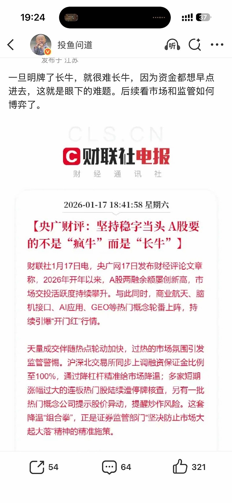 不知道大家现在能不能理解市场化的逻辑,不论是15年下半年还是24年底,我都反对大规模直接干预市场以及IPO减持等管制措施,监管层应该做的是做好投资者保护和改善公司治理,比如严打虚假披露,严罚财务造假,鼓励分红回购,保护中小股东权益等等。