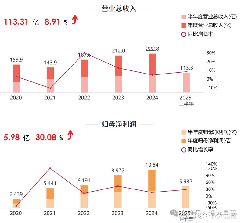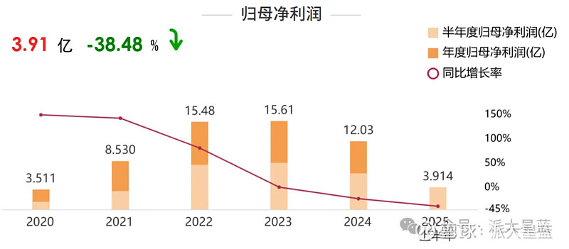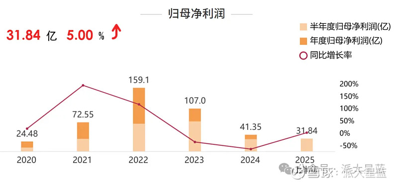 我们可以看到,20年到22年营业收入大幅增长,净利润也同步大幅增长,而22年之后营业收入基本稳定,但是22年到24年净利润大幅下降,25年上半年的净利润同比增长5%。2024年业绩底部明显。