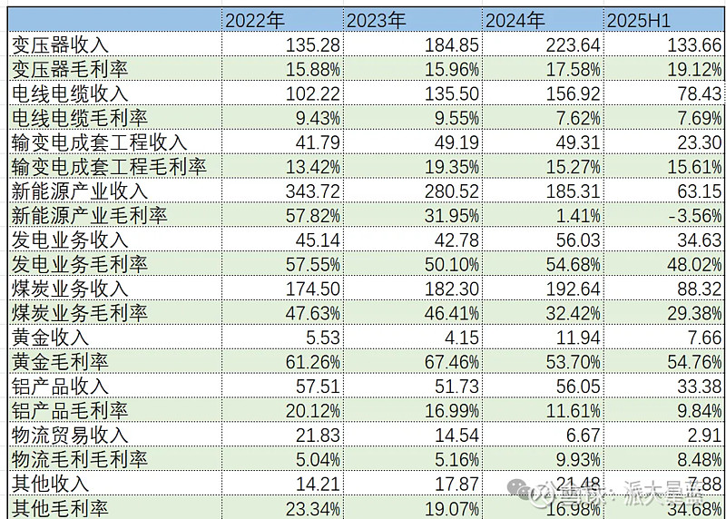 可以看出,多晶硅收入降低,但是变压器和煤炭,电线电缆等收入都在增长。但是多晶硅在22年有很高的毛利率,达57%,之后随着硅料价格下跌,毛利率降到了25年的-3.56%,同时其他业务虽然营业收入有所补充,但是毛利率增长不快,反而煤炭的毛利率也在下降,导致了净利润大幅度下滑。