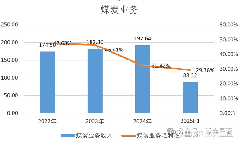 天池能源的主要业务是煤炭开采销售和火力发电。火力发电的营业收入24年大概在30亿,毛利率61%。