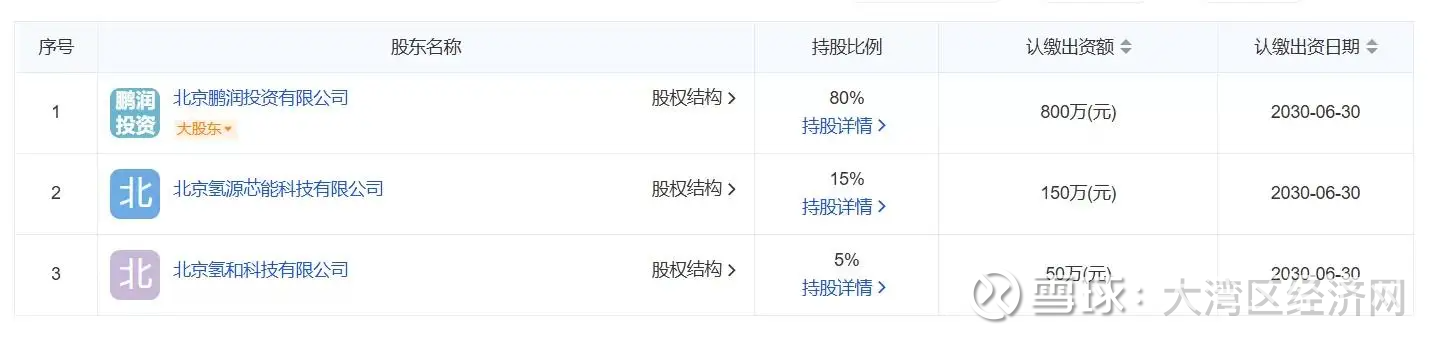 大湾区经济网了解到,股权结构显示,国美氢能由黄光裕控股的北京鹏润投资有限公司持股80%,另两家氢能企业分别持股15%和5%。公司经营范围涵盖新兴能源技术研发、储能技术服务、氢燃料及燃料电池相关设备销售、新能源汽车整车销售等,覆盖氢能产业链“制氢—储氢—应用”关键环节,同时延伸至光伏设备及物联网技术研发,定位为氢能设备材料与技术服务商。