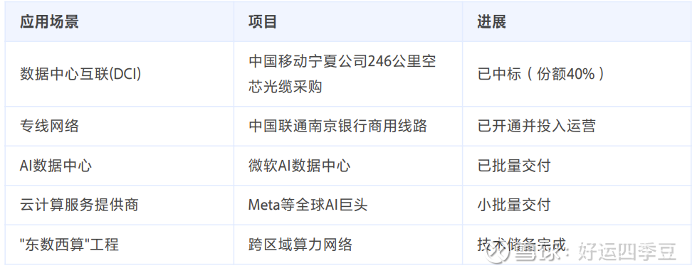 更重要的是,它已经从实验室走向商业应用——拿下中国移动宁夏246公里DCI场景采购,这是全球首个云计算服务商(CSP)的空芯光纤商用订单,意义远超普通订单。中国联通南京银行专线、微软AI数据中心的交付,验证了技术的可靠性。