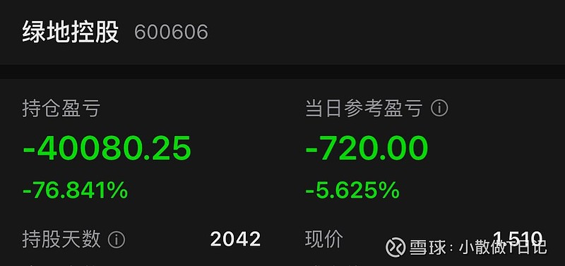 2019年进入股市,至今已经七年,亏的最惨的一只票是绿地控股目前还亏了四万多。从2020年一直持有到现在,中间一路下跌,一路补仓,越补越多,从8.4元建仓买入,一路补,越跌越补,越补越跌。