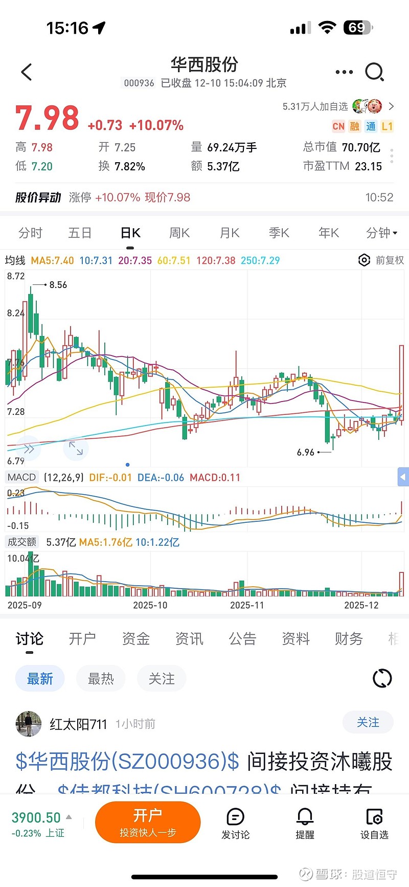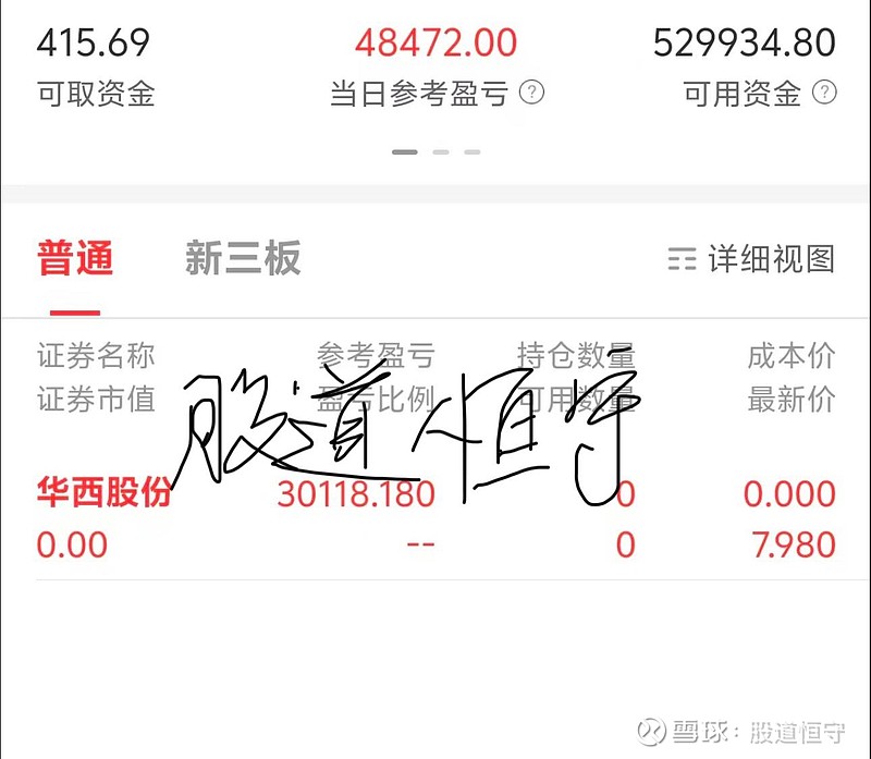 $华西股份(SZ000936)$ 第4单持有29个交易日卖出,这单时间跨度有点大,不是很理想,但总体有6个点盈利,也算没白忙活。后期交易还要优化,只要保持胜率,进出时间再不断优化,相信后面会更好一些。今天华西在涨停位置出掉,也不知道是否正确,为了保住正收益只能舍弃一些后面的利润,分享一些利润给别人总是好事,自己只是少赚些而已。午后重新建仓第5单交易,希望这单在时间上会短一些。至少心里不会太煎熬,也可以更早分享给大家。想跟随的球友可以私信,在悟道的路上能相遇也是缘份,最后祝大家股市长虹,一路有你!