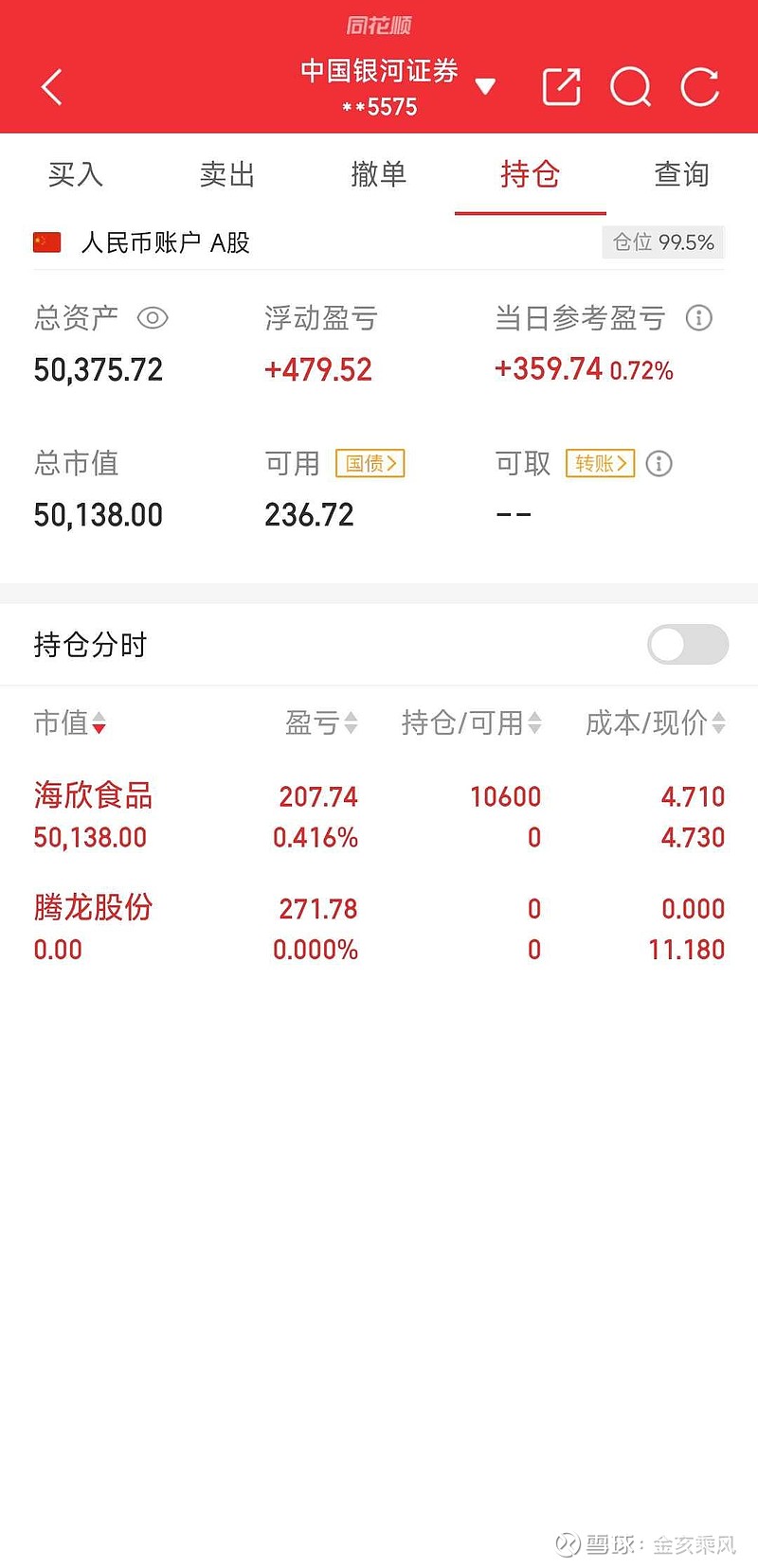改名了,这名是deepseek根据我的生辰八字给我取的名。头像也根据它的建议换了一个。希望能给我带来好运。今天梭哈了海欣食品,买这个票的原因是,上次遇到这种形态是上能电气,当时没有买。然后3天错失50个点,所以这次遇到这种形态怎么的也样赌一把。这股要么跌5个点把我洗走,要么我就多拿两三天看能不能走一个上升趋势。