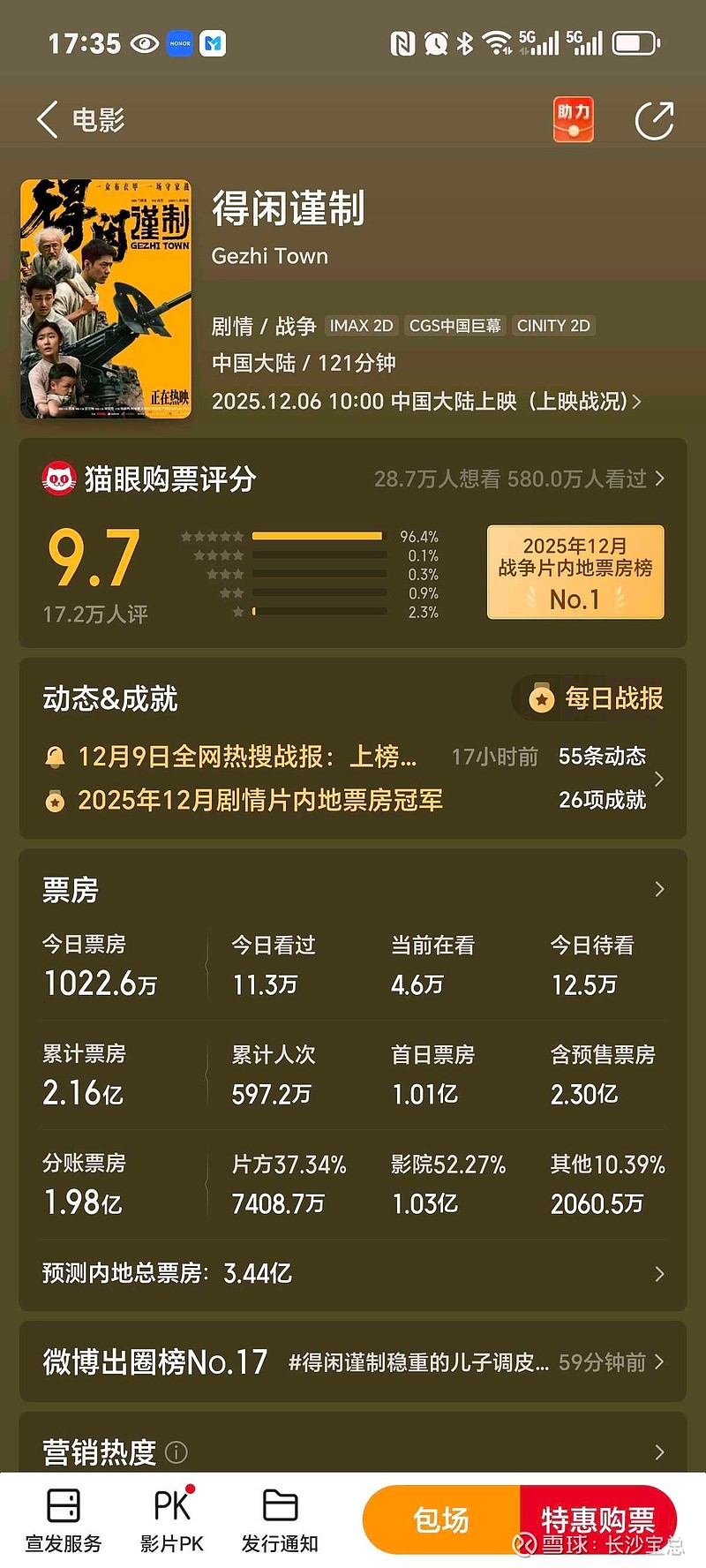 $猫眼娱乐(01896)$ 得闲的票房估计就是那么多了,4亿的制作成本有点夸张了,固定的一个场景,编剧导演主演特邀是一部分,炸房子的特效是一部分,制作周期也不长,猫眼拿的份额肯定不多,这个买卖估计猫眼不会赚到什么钱,还是卖票好了