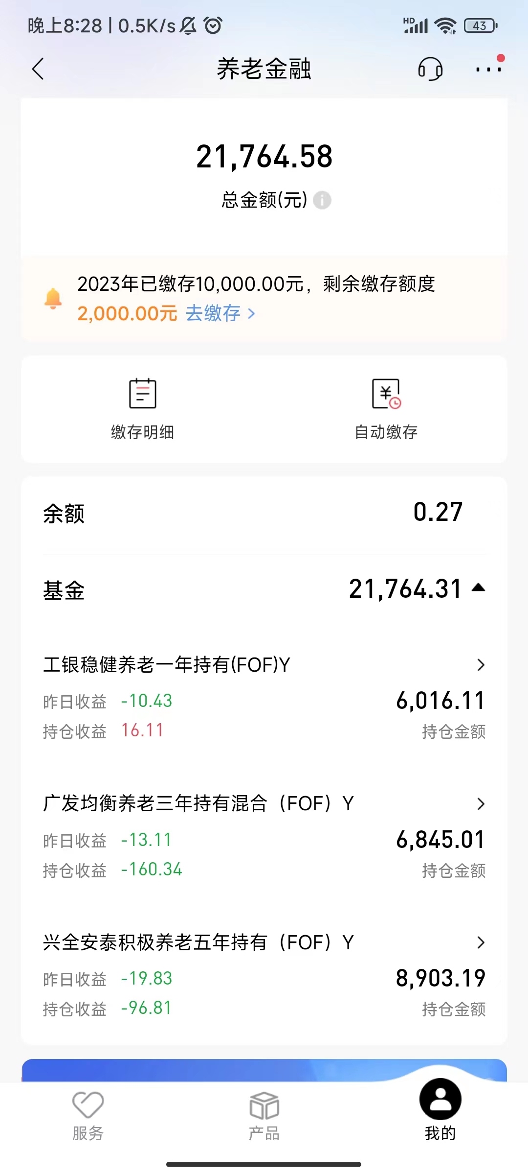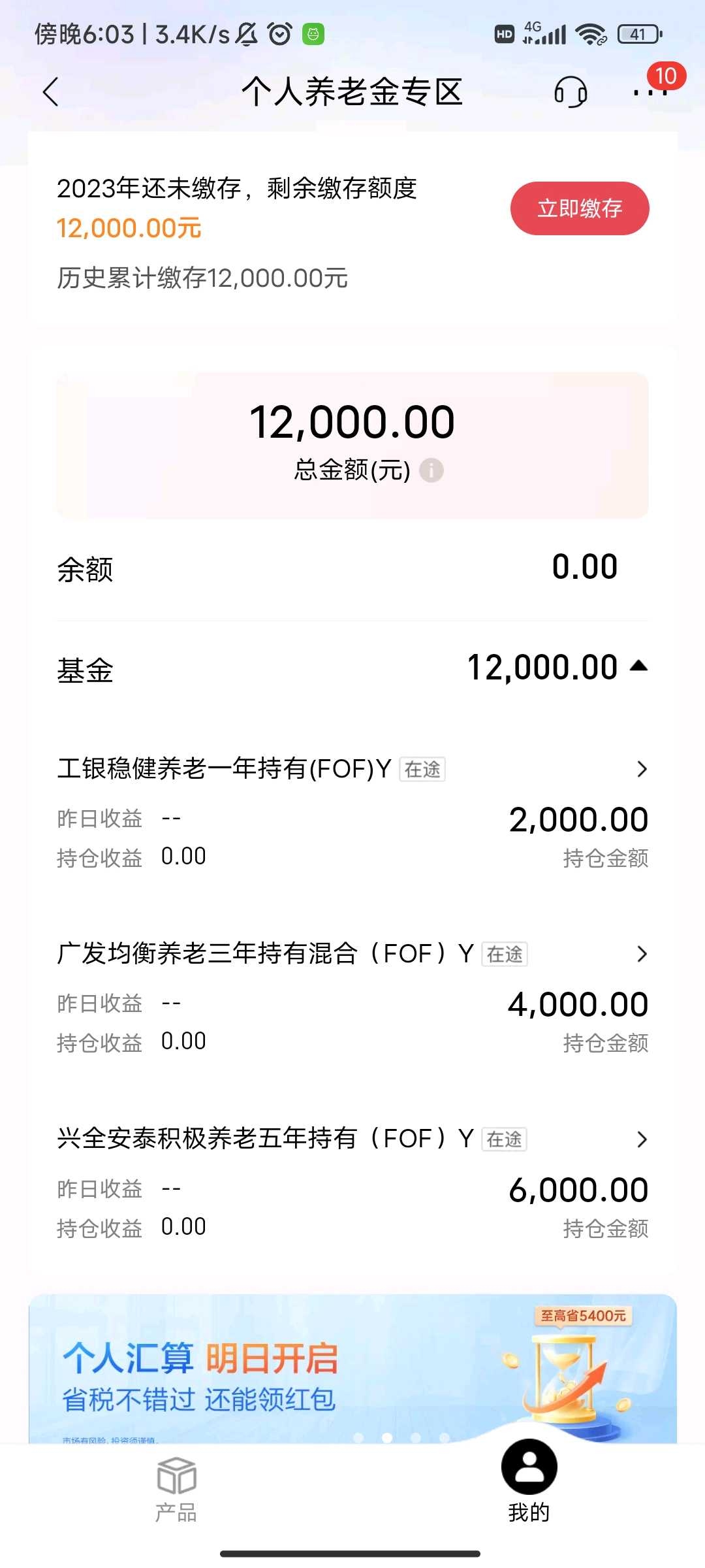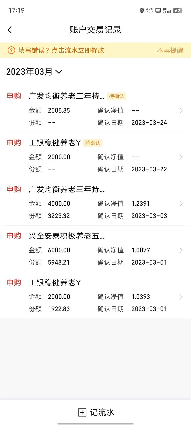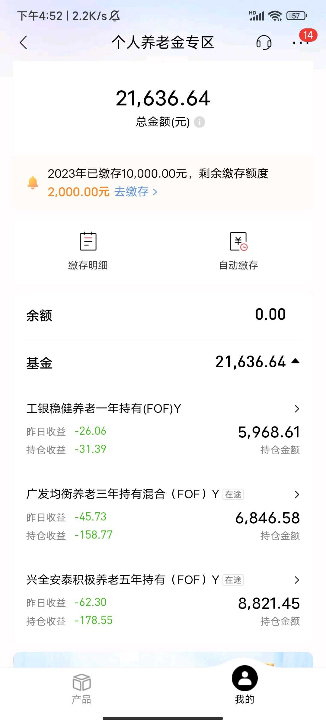 2023.4.25 2023养老金买入 2000 养老五年,今年还有4000余额