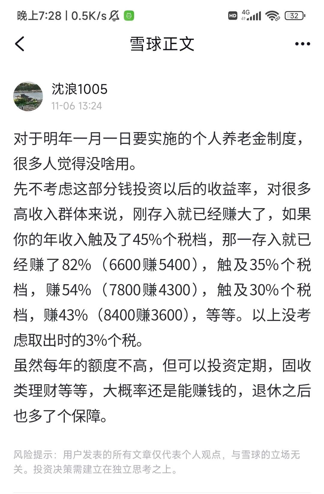 啊对,明天综合所得年度汇算,应该可以退税,然后再转入2023年的养老金账户,按照@沈浪1005 大佬的说法,这笔交易提前锁定43%收益(不考虑取出3%个税)!