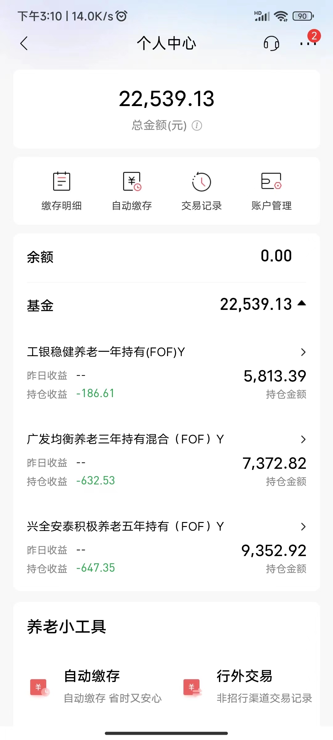 2023.4.21 2023养老金买入 2000 $工银瑞信稳健养老一年(FOF),今年还有6000余额