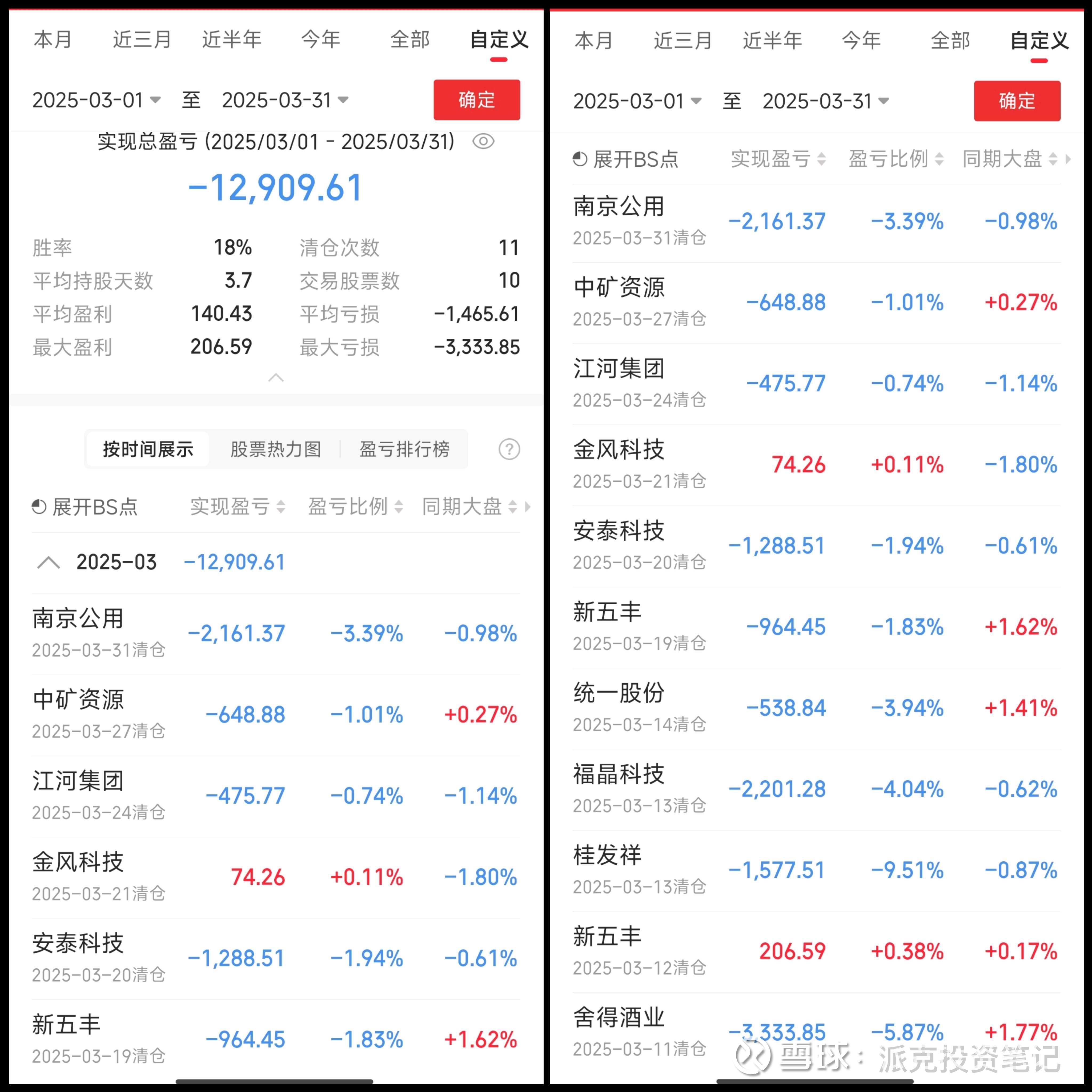 2025.3 一共亏损12909.61+,胜率2/11,上证指数上涨0.45%,远远跑输指数。