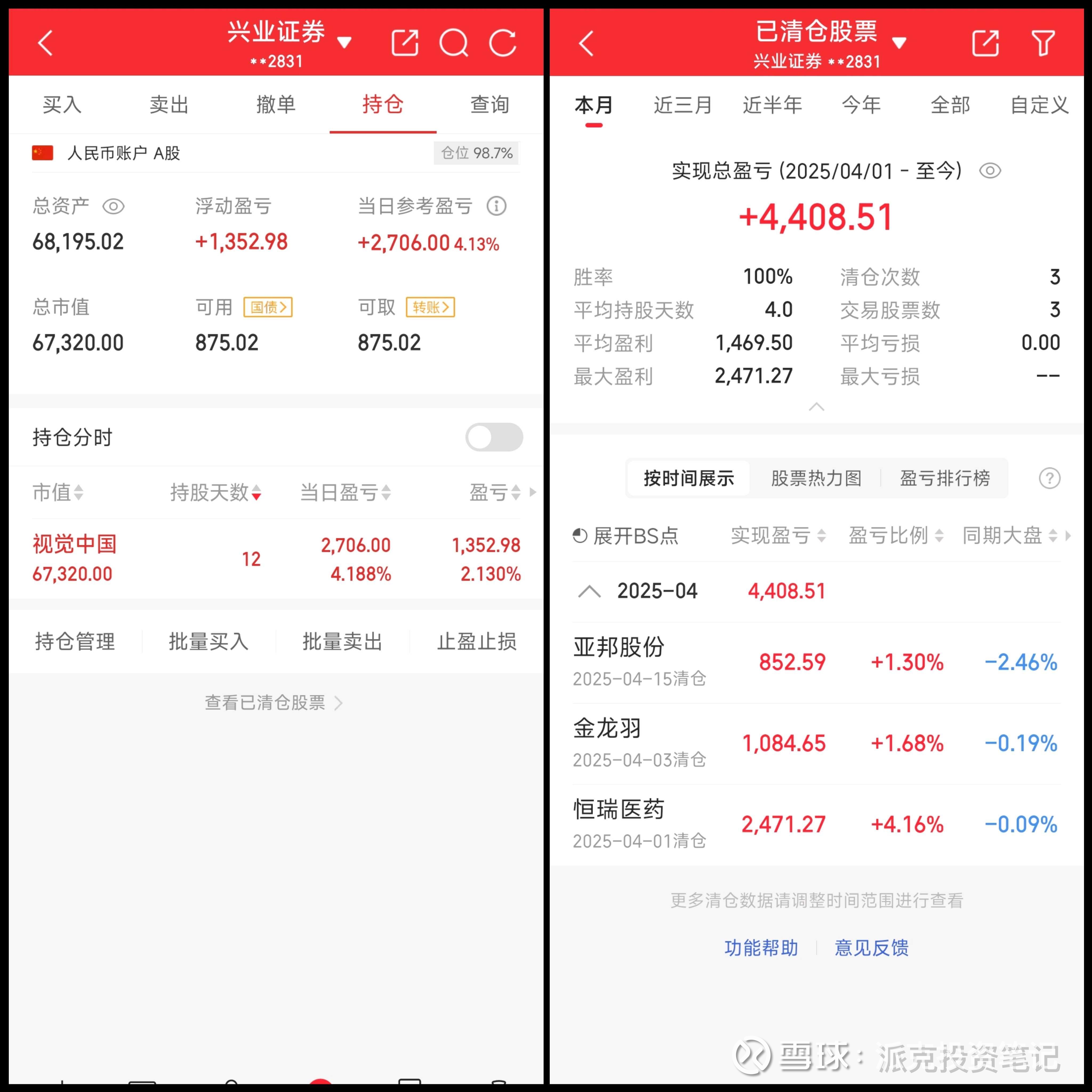 2025.4 一共盈利5761.49+,胜率4/4,上证指数上跌1.7%,跑赢指数。