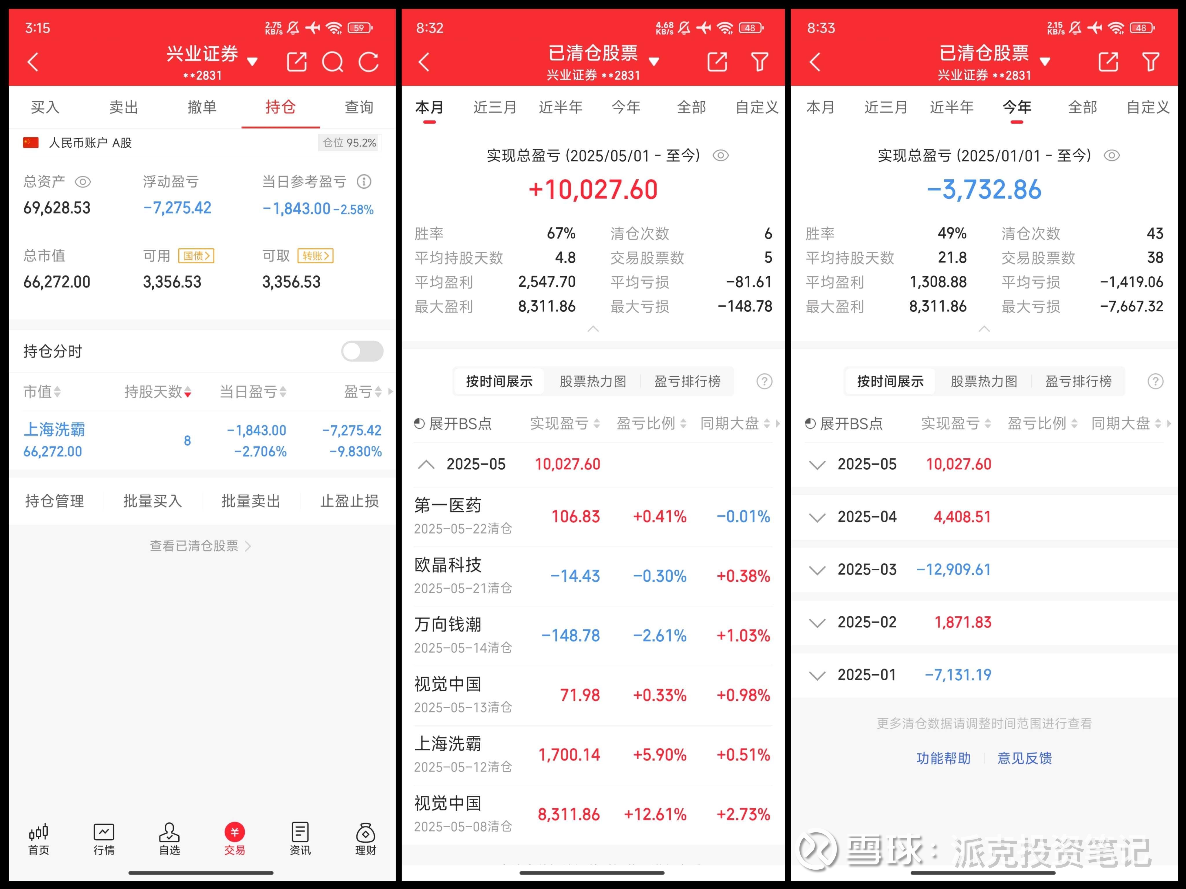2025.5 一共盈利2752.18+,胜率4/7,上证指数上涨2.09%,远远跑输指数。