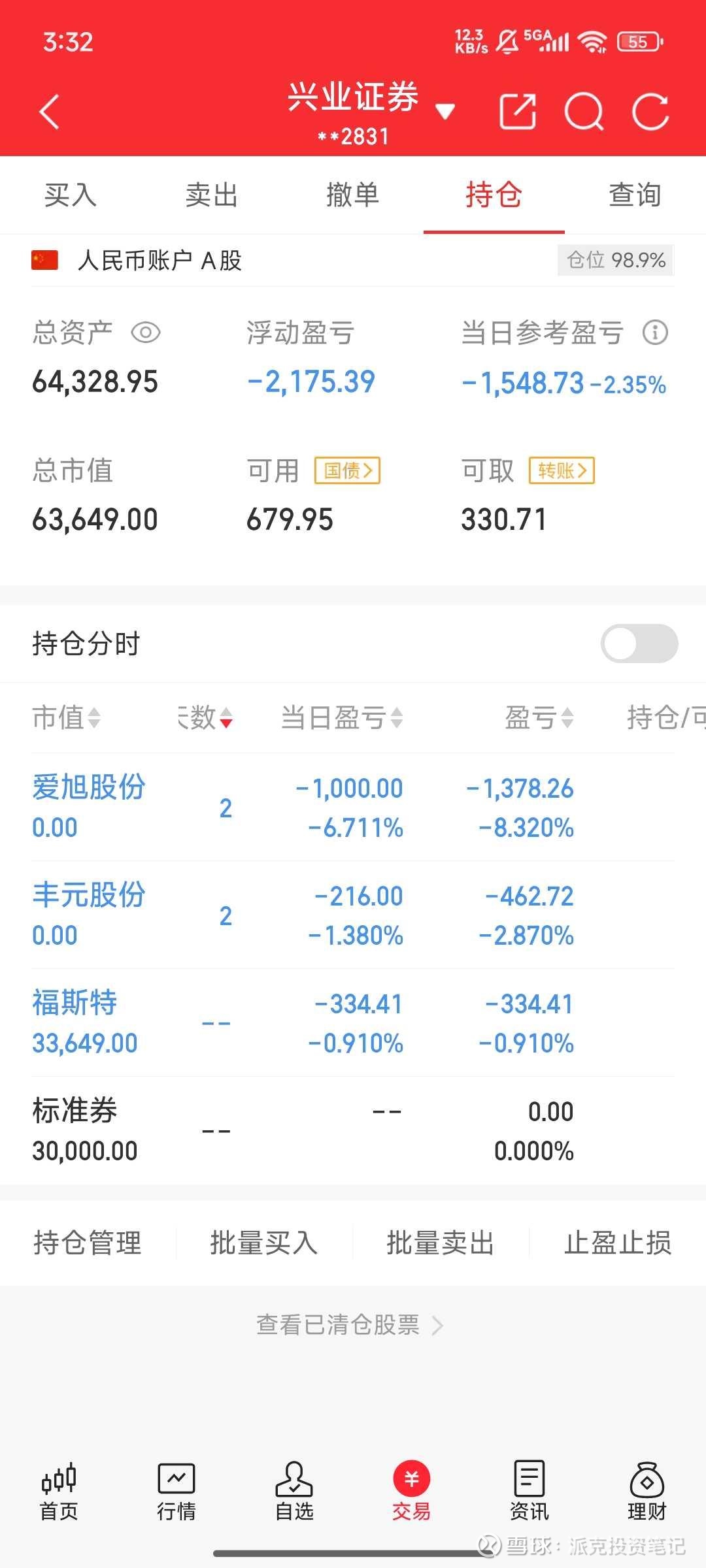 连亏三个月了,本来寻思这个月能翻红,实际两天又绿盘了,小账户的确没啥指望了,认命了,到目前为止,离账户回本还差5000,后两个月还能有机会吗?我打个问号,我反正不知道买啥票了,啥啥都不赚钱,兄弟们,太难了!