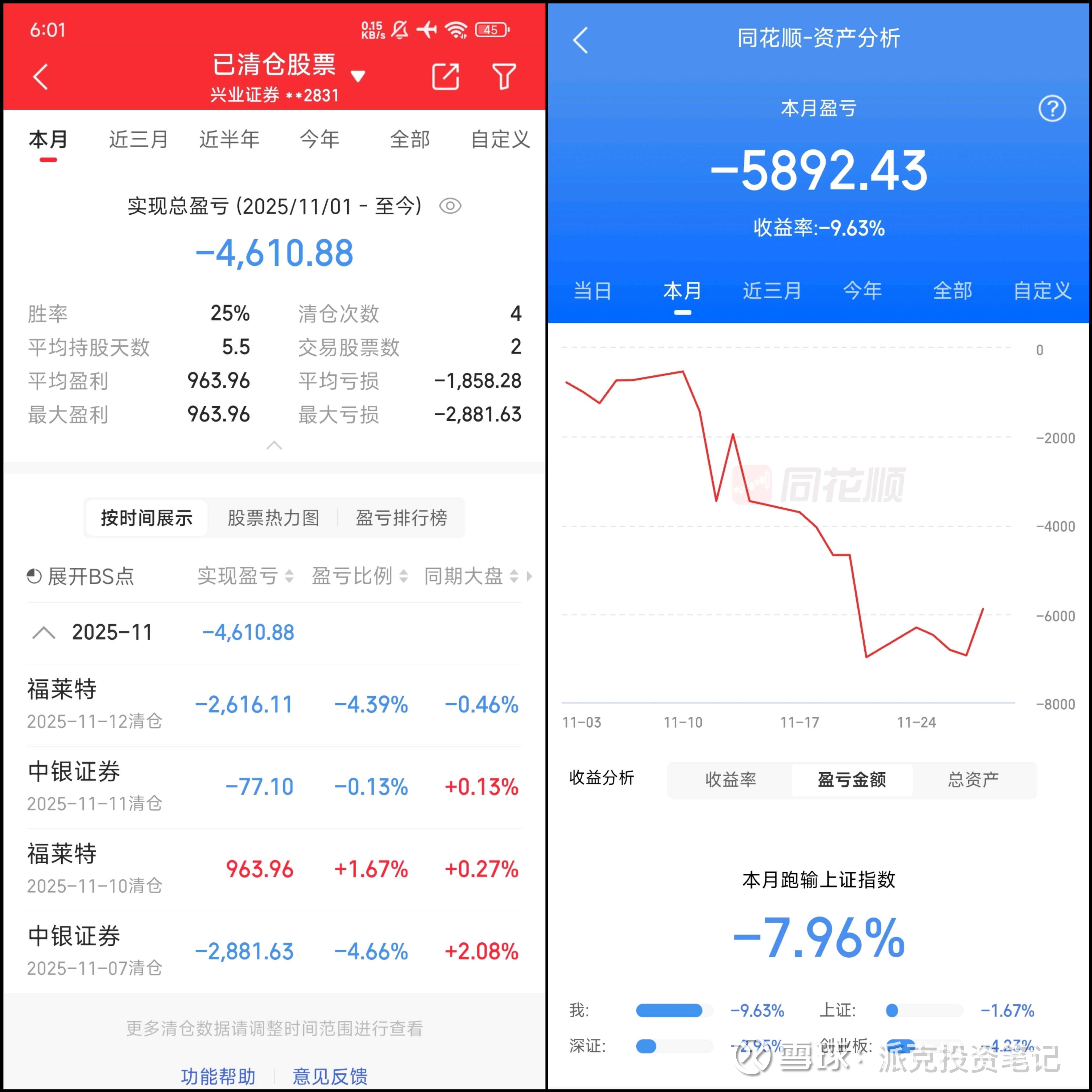 2025.11 一共亏损5892.43,胜率1/5=20%!