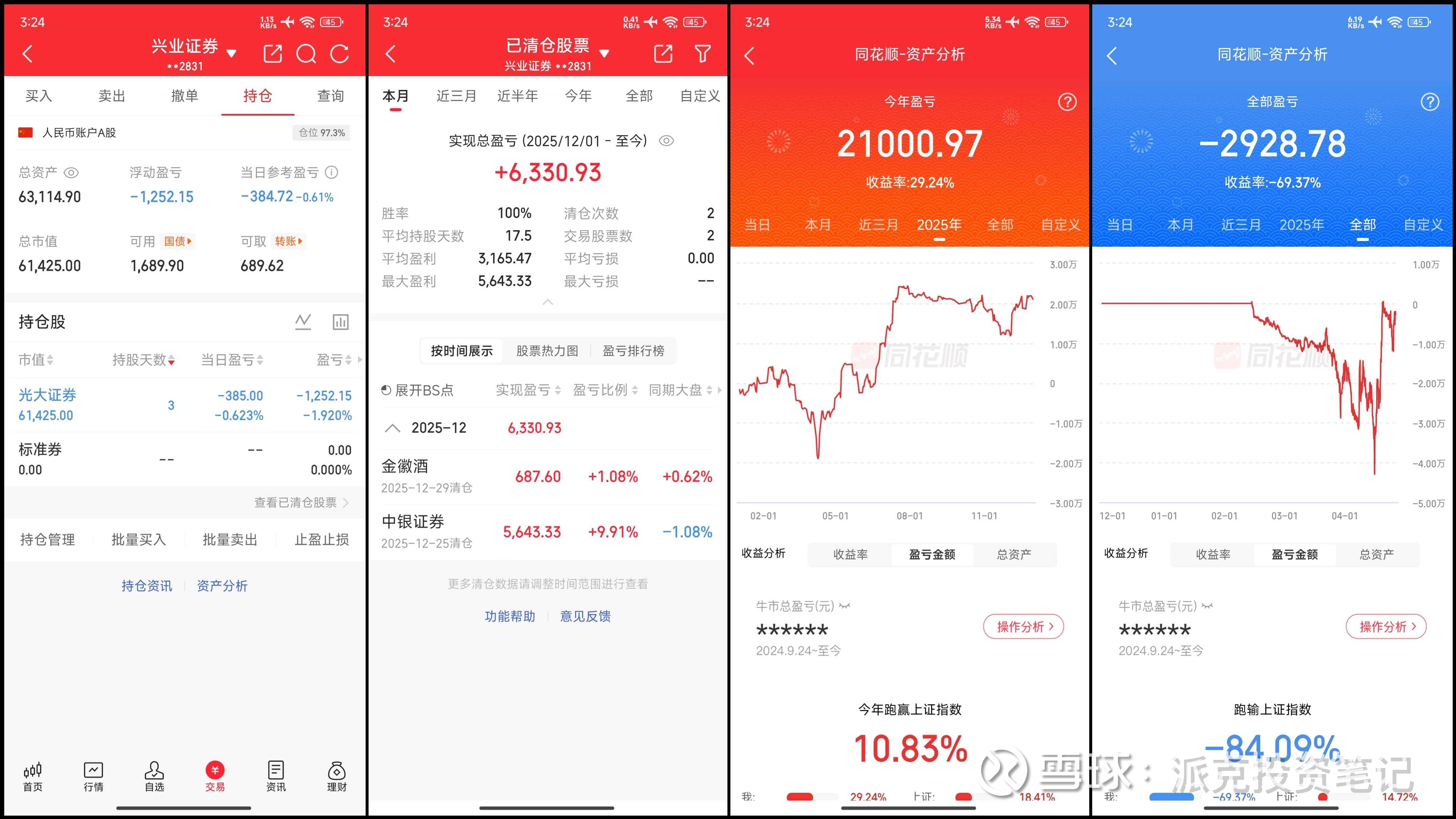 2025.12.31 从年初69362.6到现在63114.9(净转出2.4万),账户总计盈利21000.97,交易费用3248.67,实际落袋11752.3,免费打工一年,封贴了。