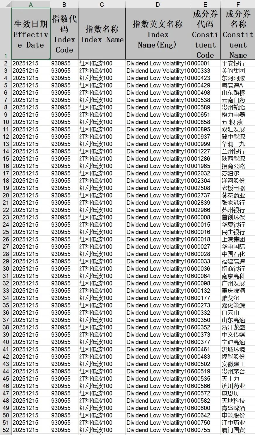 需要说明的是,本次调仓将在12月15日生效,同时现阶段只公布了名单,并没有比例,因此现在只做定性分析,后续权重数据公布了再及时发布最近成分股权重分布图(链接🔗:中证红利低波100指数最新成分股分布图及调仓分析(2025.9))。