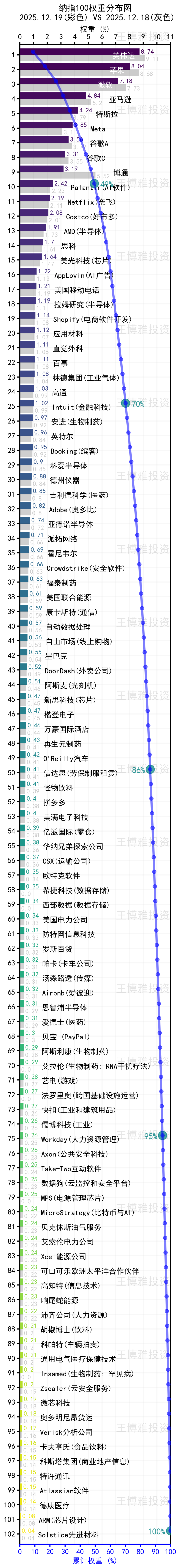 彩色柱状图代表的是2025年12月19日成分股权重;