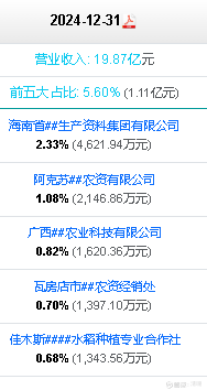 从上往下分别是海南辉隆,阿克苏联丰,广西旭海,瓦房店华杰,佳木斯熙瑞,因为国光的经销商太多了,前5大经销商占比也才5.6,所以只要不出现大面积经销商反水,国光的业绩是非常稳定的,业绩不容易出现大涨大跌,