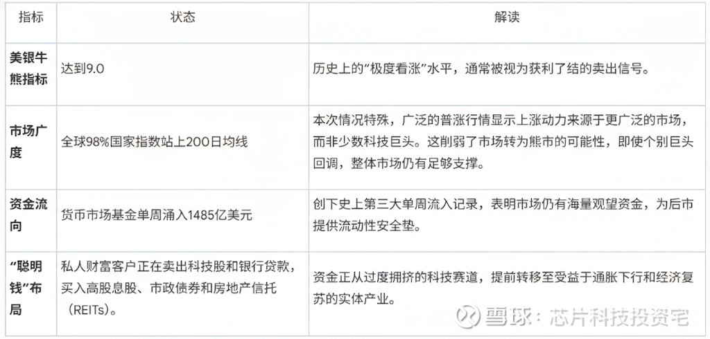 其次,美银首席投资策略师迈克尔·哈特内特(Michael Hartnett)提出极度看涨的逆势观点。他认为,尽管市场情绪指标发出“卖出”信号,但广泛的市场上涨广度和中期选举前的政治驱动型经济刺激政策,为“做多经济繁荣、做空资产泡沫”的策略提供了支撑,建议投资者从科技股轮动至银行、地产、原材料等价值板块。
