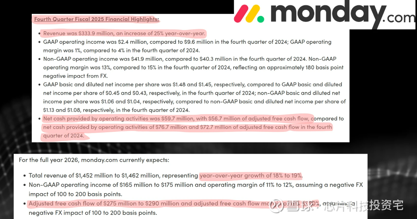 $monday.com(MNDY)$ (MNDY)公布了 2025 年全年财报和 2026 年展望。网页链接