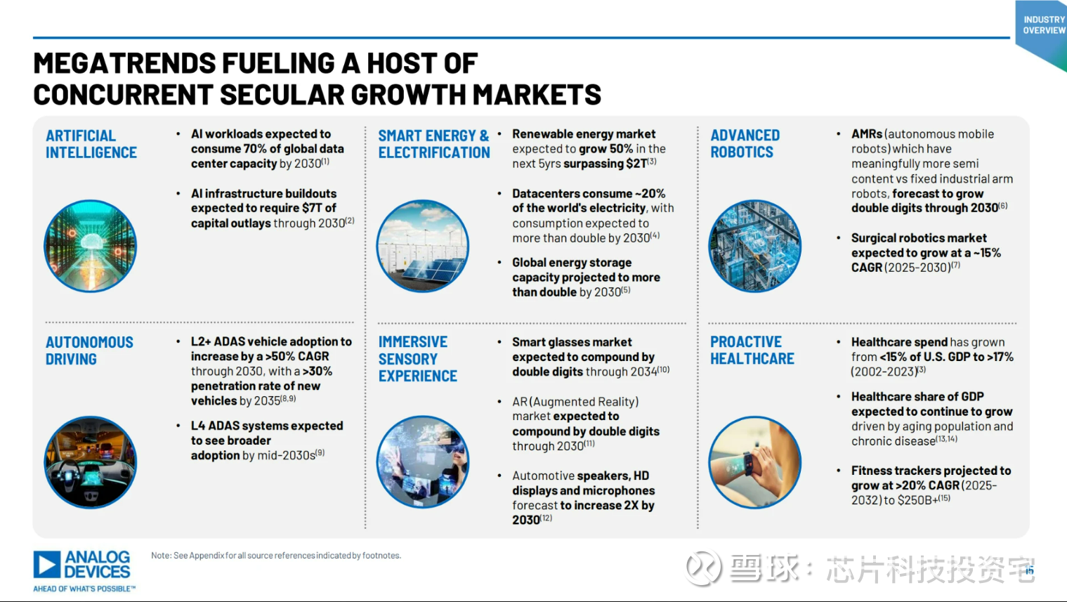 Analog Devices$亚德诺(ADI)$ 认为,它是多个长期增长趋势的关键推动者,这些趋势拥有广阔的发展前景。