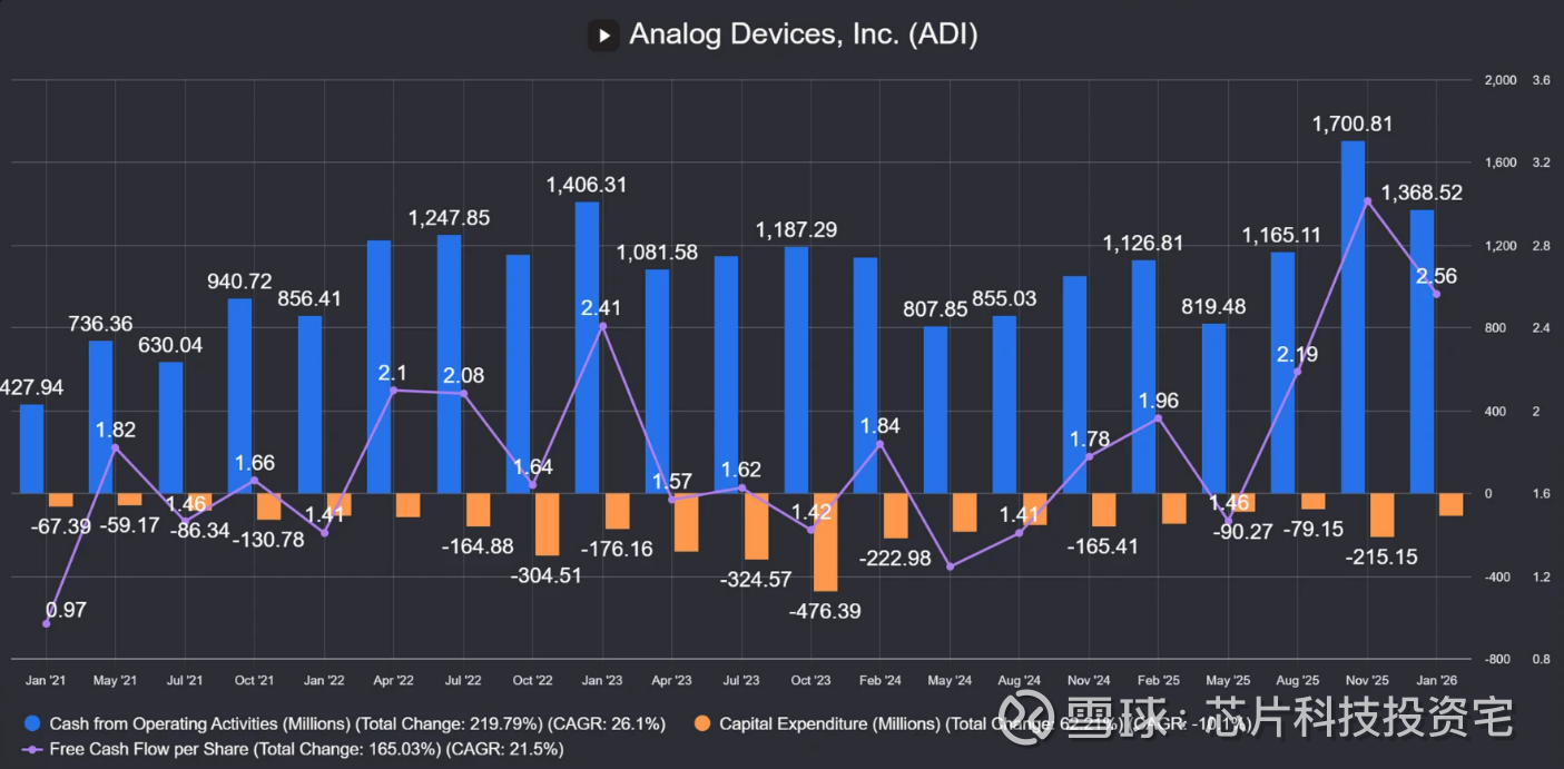 $亚德诺(ADI)$ 的商业模式进行了改造,财务报表也非常出色
