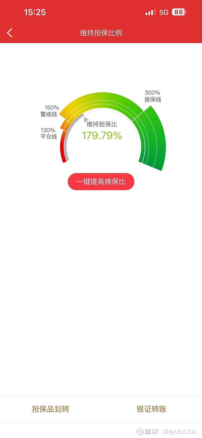 $贵州茅台(SH600519)$ 持仓3000股贵州茅台,市值397.11万,融资379万,净资产18.11万,总亏损201.89万,综合融资成本4.3%,融资年利息16.25万,年分红15.44万,综合持仓成本1989元/每股。距离2024年9月19日的近五年最低点1182.93元还差不到10%的跌幅,离追加保证金也不远了,现在是黎明前的黑暗吗?