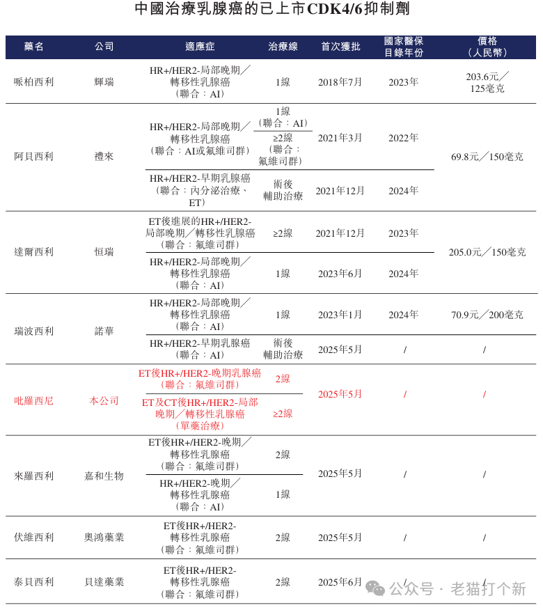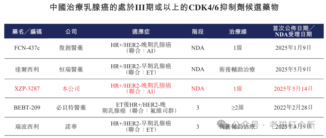 于2025年4月提交联合AI(芳香化酶抑制剂)治疗晚期HR+/HER2-乳腺癌的NDA申请,于5月获受理;
