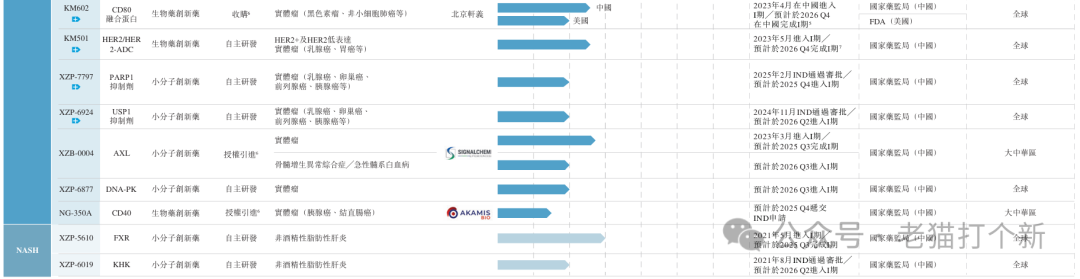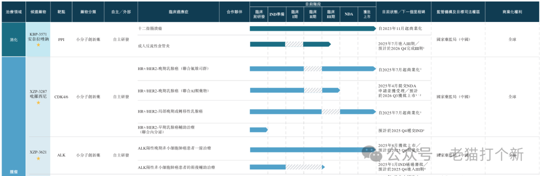 截至最后实际可行日期,公司有超过十种药物资产在积极开发中,涵盖消化系统疾病、肿瘤和非酒精性脂肪性肝炎(NASH),包括三项NDA批准资产,一个药物项目处于NDA注册阶段,一个药物项目处于III期临床试验阶段,四个药物项目处于I期临床试验阶段,五个已获IND批准。
