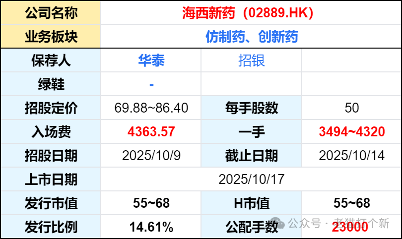 海西新药,作为成熟仿制药企业,同时布局了主流肿瘤创新药,自给自足,盈利能力不错,增长点也不缺,整体基本面不错,公司估值给的较低,而且公配2.3w手,中签相对容易一点点,入通只是一小步,长线前景也不错。