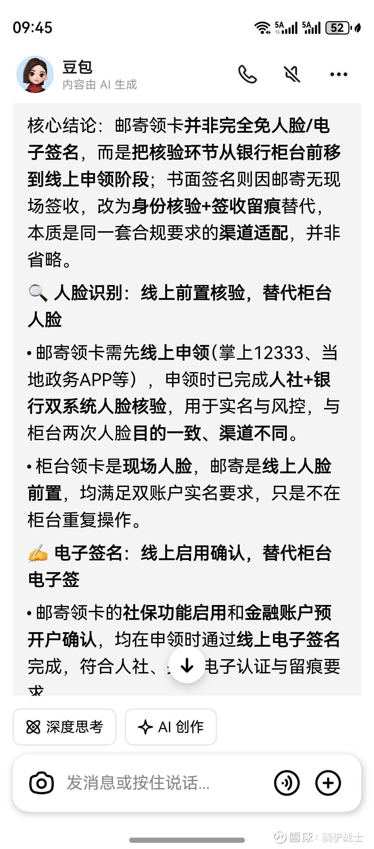 回复@骑驴战士: 领卡的短信是上个月收到。也就是说相关卡的制备已经完成,申领阶段已经完成人脸识别。这跟邮寄是吻合的。那么相关卡制备完成,用户明确不开通金融功能的情况下,现场多次人脸识别的必要性在哪里?如果存在某种形式的激活或者写入操作,邮寄怎么实现?难道邮寄渠道和现场申领两种渠道制备的卡不是同一种卡?//@骑驴战士:回复@老笨2点0: 查看图片