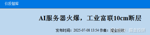 工业富联:营收3607.6亿元/36%,归母净利润121.1亿元/39%,均创同期历史新高。其中,第二季度单季营收2003亿元/36%;净利润为68.8亿元/51%,也均创下同期历史新高。预期2025年实现净利润300亿/29%,对应24倍PE。7月8日业绩预告断层时曾重点做过交流。