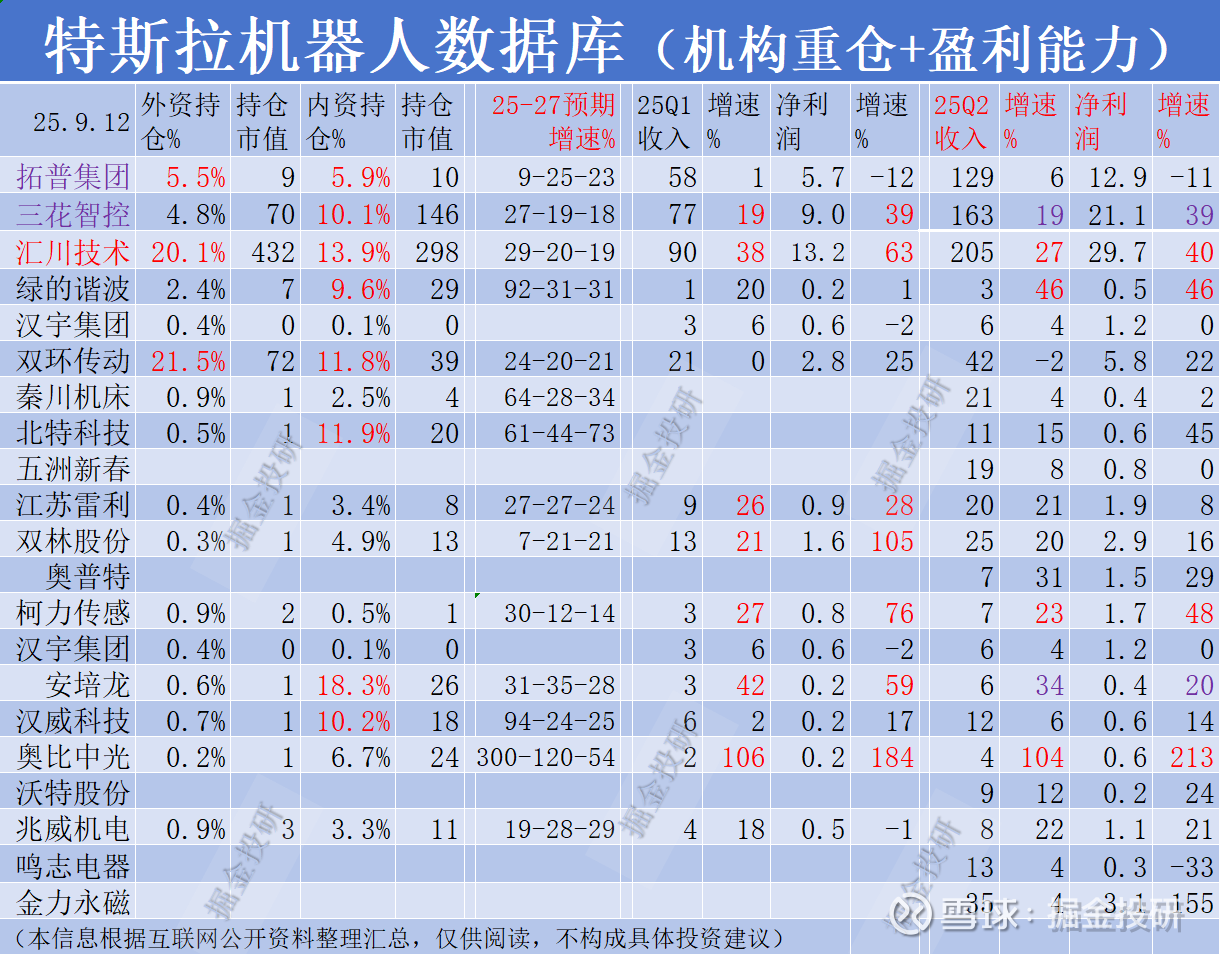 上图收藏起来,多看看,内外资也是很聪明的,看看他们选的企业,拓普集团、$三花智控(SZ002050)$ 、$汇川技术(SZ300124)$ 、双环传动等都是细分行业的第一梯队企业。