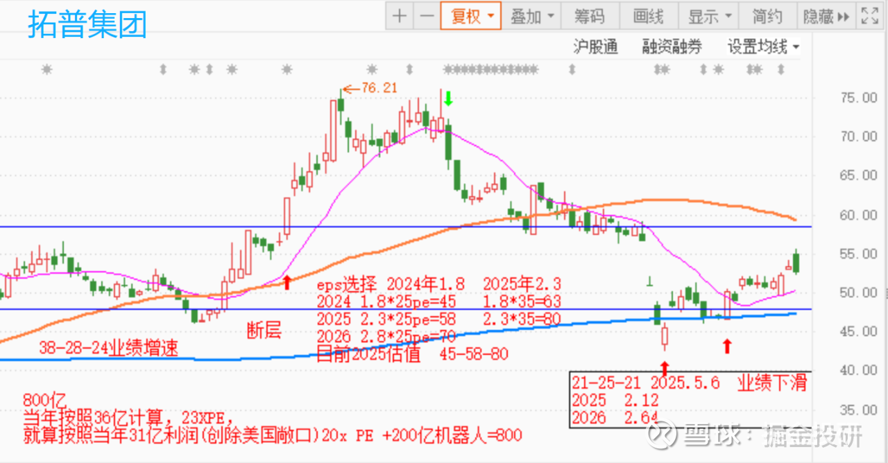 既然业绩兑现难,你参与的时候也不要追的太高。像$拓普集团(SH601689)$ 、三花智控等都是在合理-低估区间给大家介绍企业的价值的。截止今天拓普集团也收获50cm了,扶上马送一程,后面的的走势自己把握了。